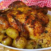 Frango Assado + Farrofa + Batata + 10 pães + coca 2l.