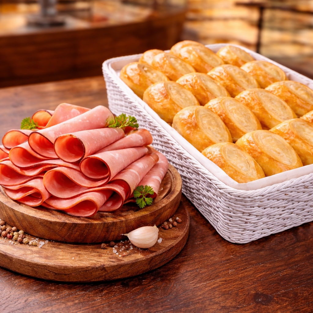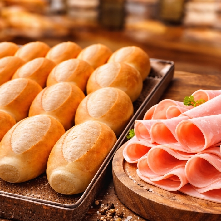 6 Pães francês e 200g de Mortadela Defumada.