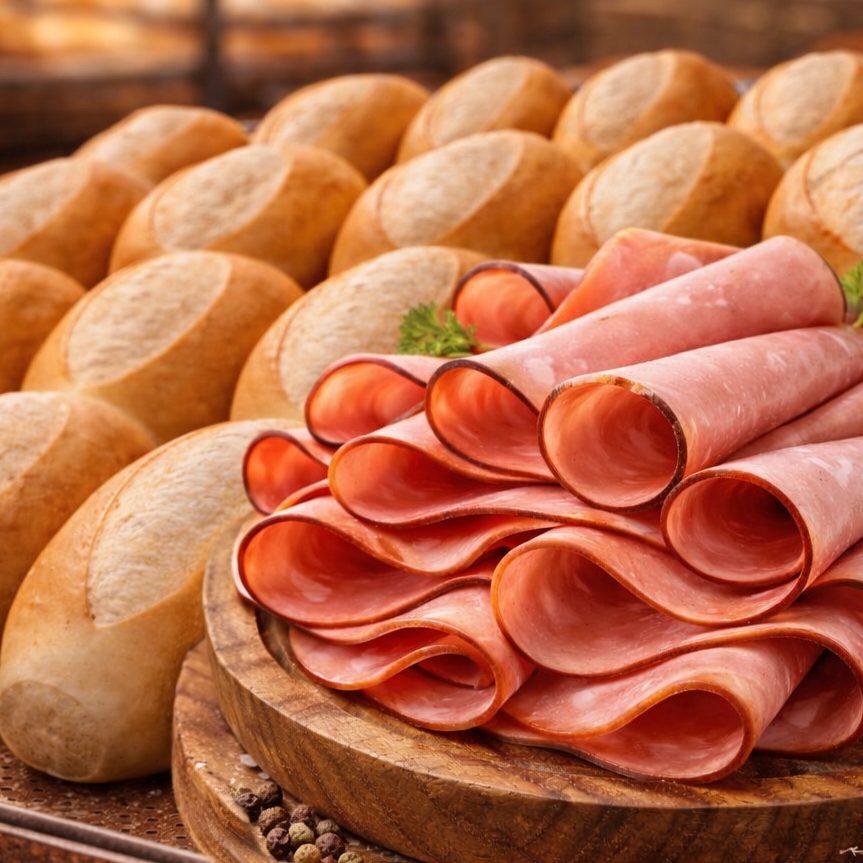 6 pães francês e 200g de Mortadela comum.