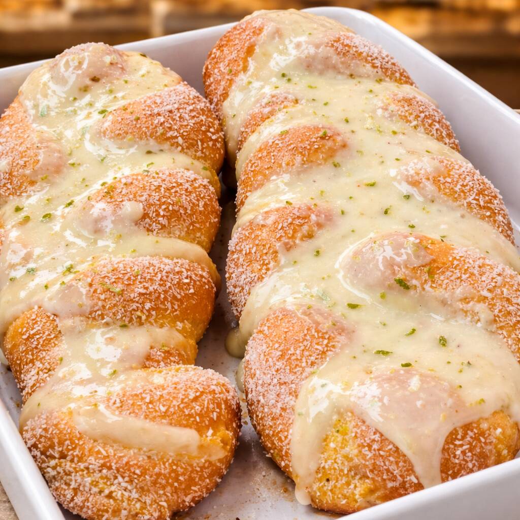 Pão doce trançado, fofinho, com coco, creme e generosa cobertura de creme de limão.