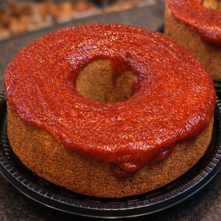 Pão doce trançado, fofinho, com coco, creme e generosa cobertura de creme de maracujá.
