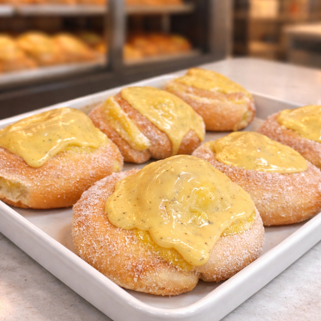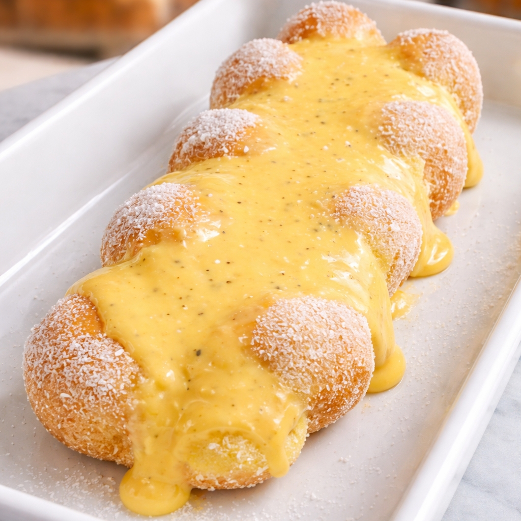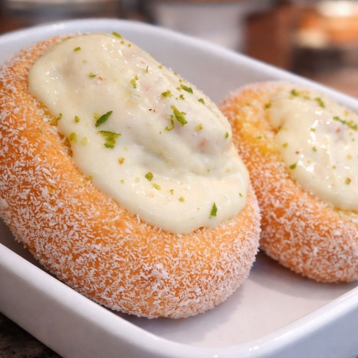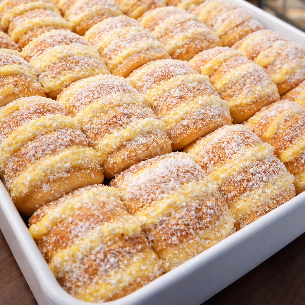 Pão doce, fofinho, com creme, coco e generosa cobertura de creme de limão!