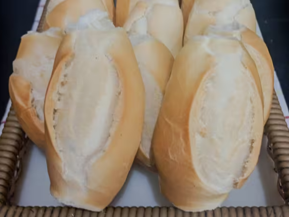 Brioche feito de farinha extra clara coberto com queijo ralado parmesão.