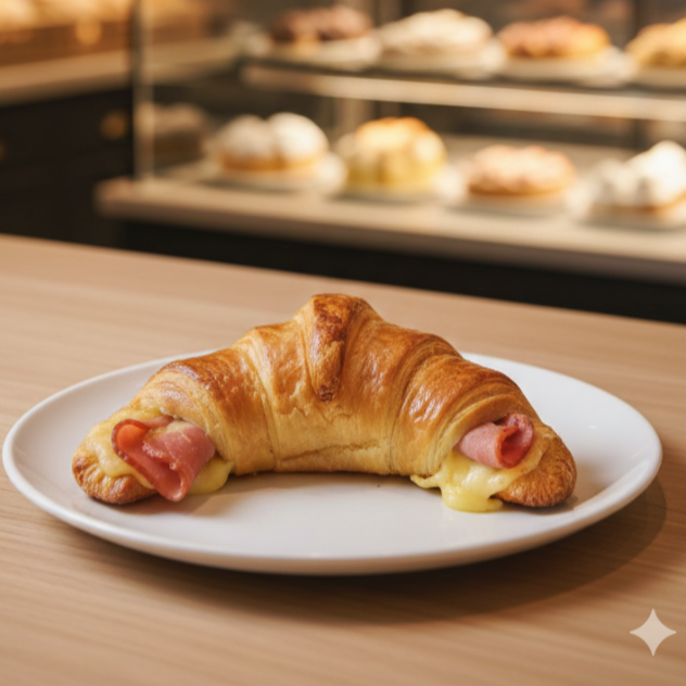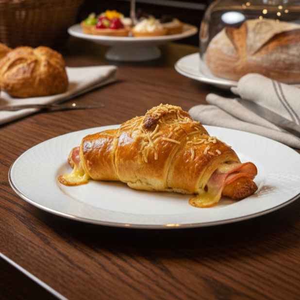 Peito de peru com Mussarela e massa semi folhada crossaint.