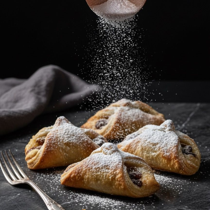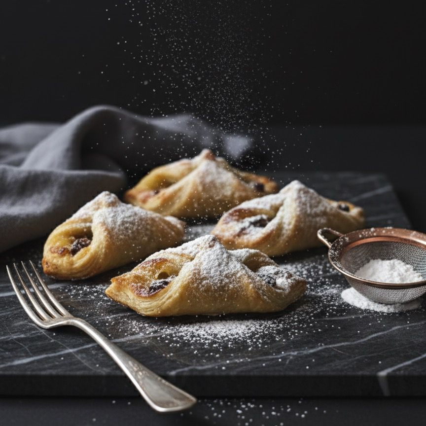 Massa Folhada banana creme canela e açucar confeiteiro.