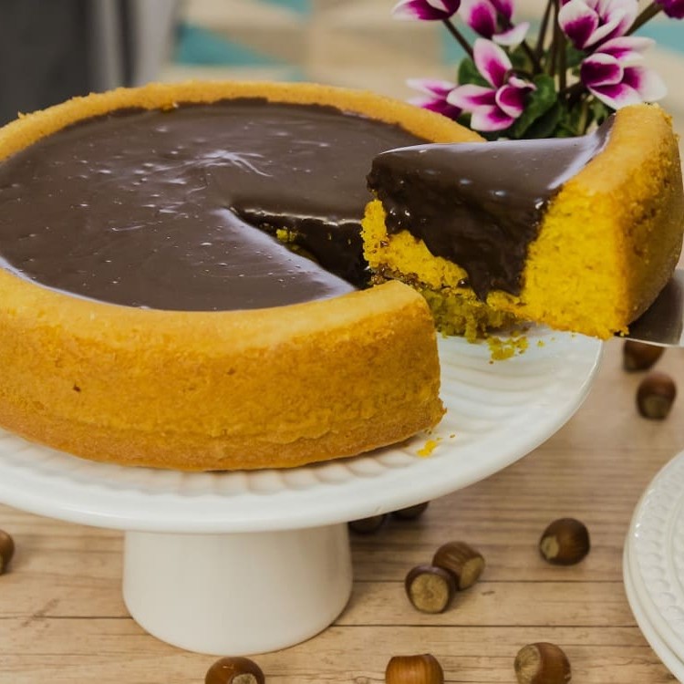 Com massa macia e artesanal com toques de chocolate branco e cobertura ganache de chocolate branco