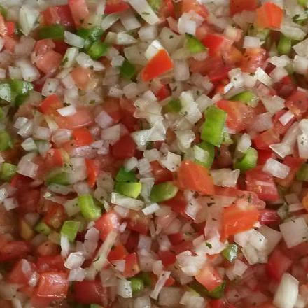 Meio Frango Assado, acompanhado de Batata Calabresa, Farofa, Molho a Campanha, Porção de Arroz Pequena e Porção de Batata Frita Pequena