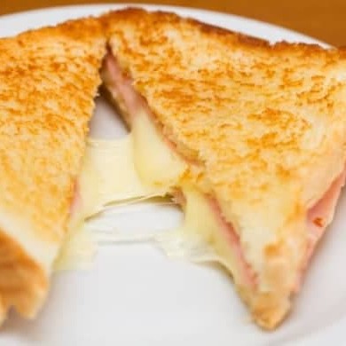 Pão francês, suiço ou de forma com queijo prato ou mussarela, presunto e manteiga