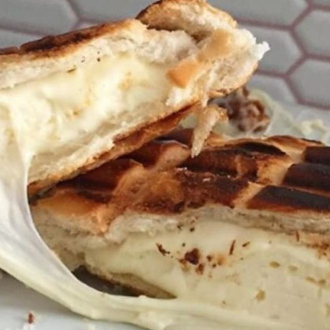 Pão massa fina com Queijo, presunto, peito de frango defumado e requeijão.