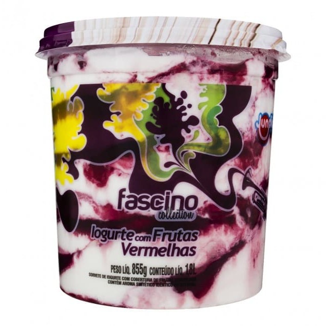 Unidade de pote de sorvete fascino 1.5 litro sabores: Iogurte com frutas vermelhas, Chocolate com avelã e Banoffe