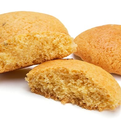 Unidade de pão de coco artesanal Possui dois formatos. Cilíndrico e redondo