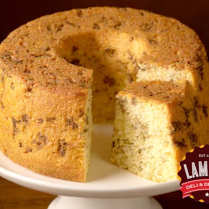 Laranja: Frescor e leveza em cada fatia! O Bolo de Laranja é preparado com o suco e as raspas da fruta, resultando em uma massa úmida e aromática, perfeita para alegrar o seu paladar.