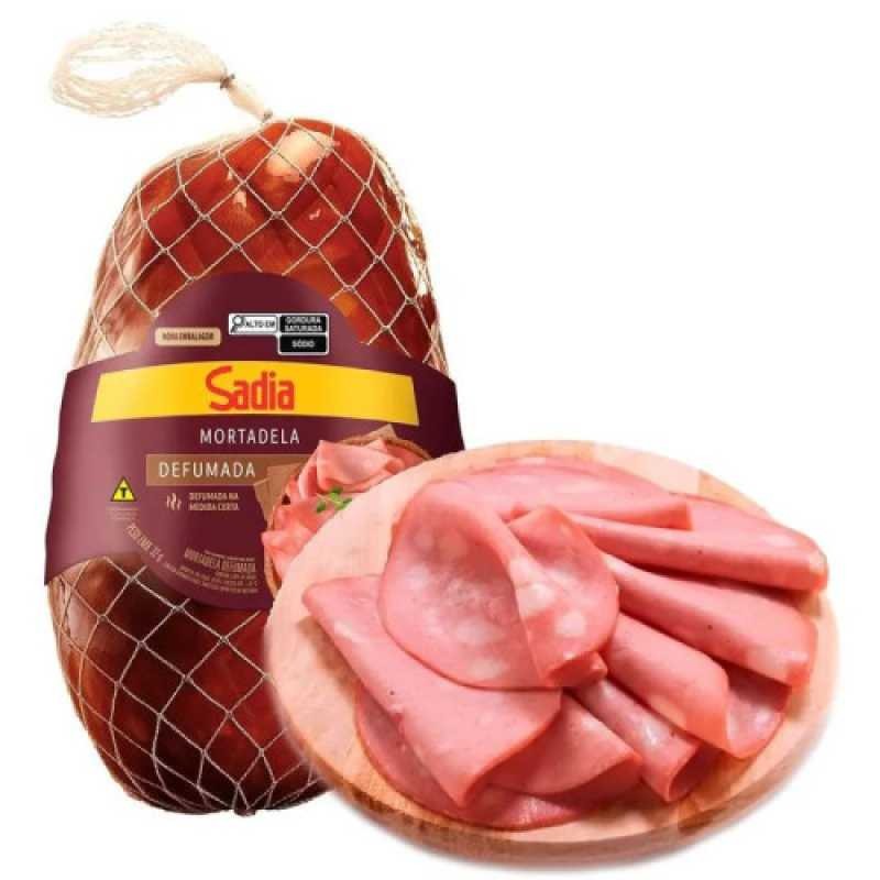 Deliciosa mortadela defumada, fatiada na hora, perfeita para sanduíches ou aperitivos.