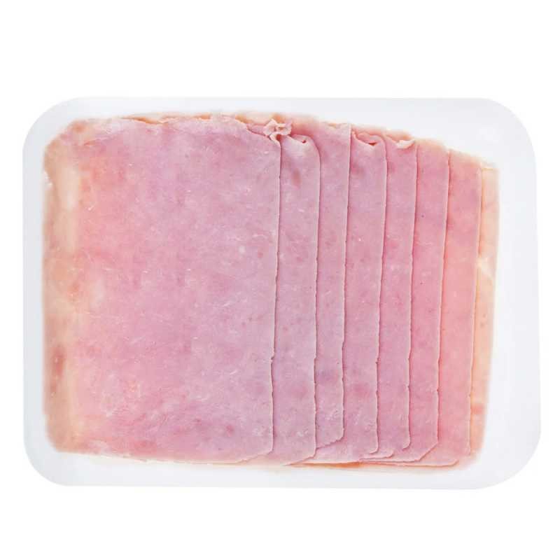 Delicioso presunto fatiado com sabor e qualidade. Acompanhamento perfeito para sanduíches.