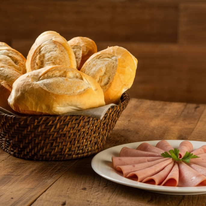 6 Pães Francês + 100g Presunto