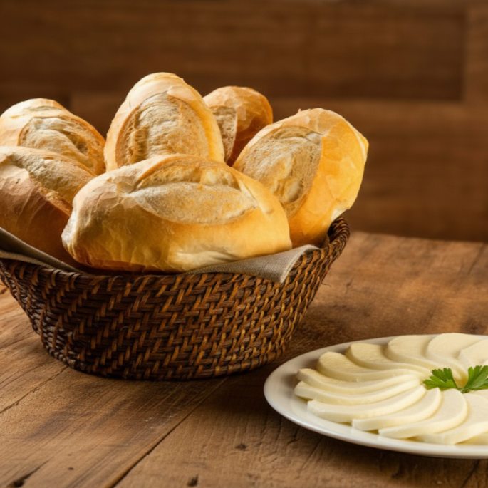 ombo perfeito para o café da manhã! Seis pães franceses fresquinhos acompanhados de 100g de queijo fatiado, ideal para um lanche rápido e delicioso.
