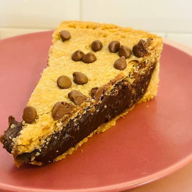 Torta com massa de cookies e generoso recheio cremoso de brigadeiro. Uma delícia!