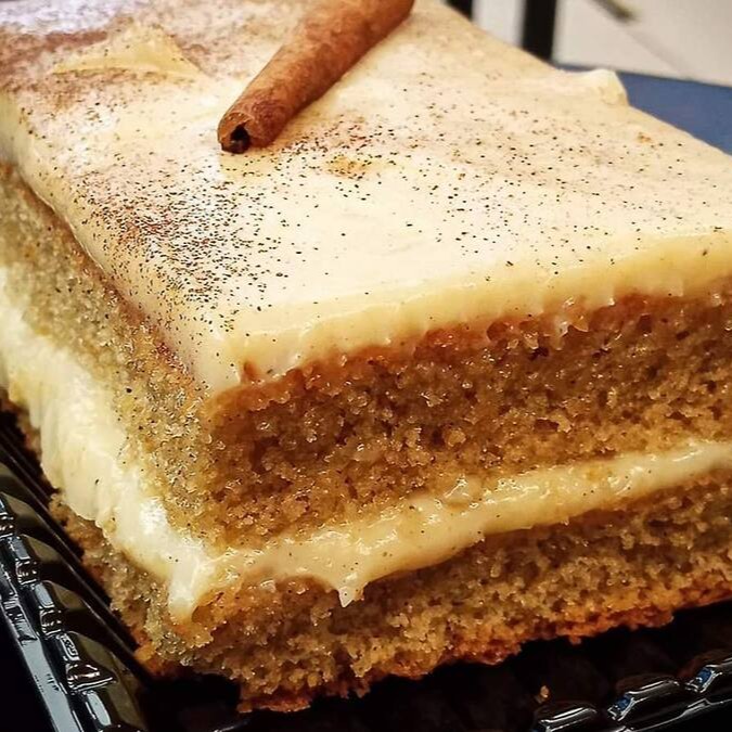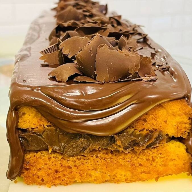 Deliciosa fatia de bolo Indiano feito com esoeciarias o com um maravilhoso recheio de leite condensado que umedece a massa e a deixa com um sabor inigualável. Aprox. 300g.