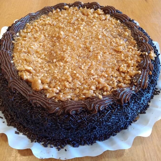 Massa de chocolate com recheio de doce de leite. Uma das preferidas dos clientes.