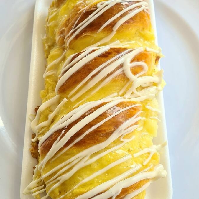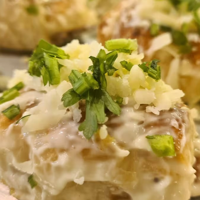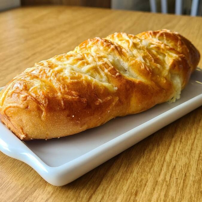 Irresistivel para quem gosta de queijo! Delicioso pão recheado de 3 deliciosos queijos: parmesão, mussarela e gorgonzola.