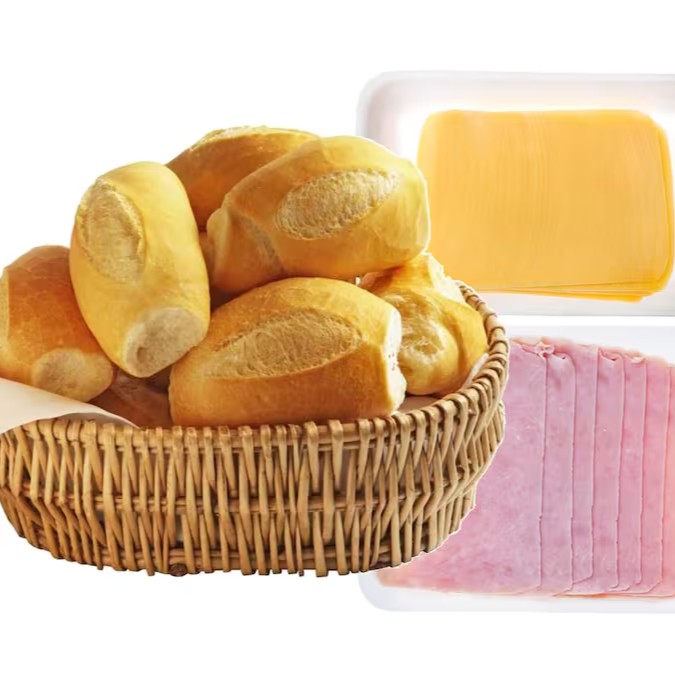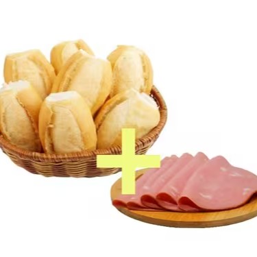 Combo 8 Pães Franceses + 100g Queijo Prato + 100g Presunto