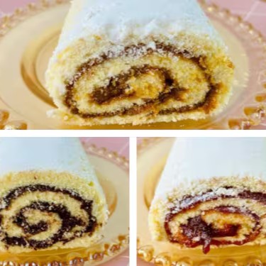 Delicioso rocambole com massa fofinha de morango com amora e um maravilhoso recheio cremoso de Ninho que parece ter sido especialmente para essa combinação.