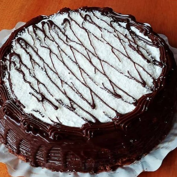 Torta irresistível de feita com massa de chocolate com recheio e cobertura de coco e chocolate!
