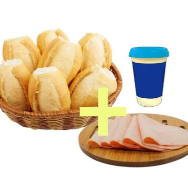 Combo especial para seu café da manhã e da tarde ou aquele lanche especial! Nossos 8 pães franceses, 100 gramas de queijo prato fatiado e 100 gramas de presunto.