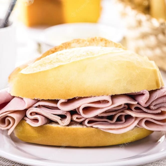 Pão francês com manteiga, presunto e queijo prato ou mussarela. - Escolha o preparo frio ou na chapa.