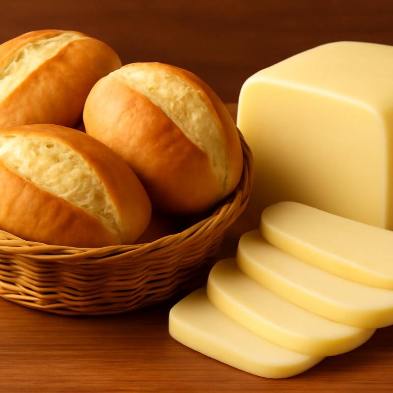 Pão francês com manteiga e queijo prato ou mussarela. - Escolha o preparo frio ou na chapa.