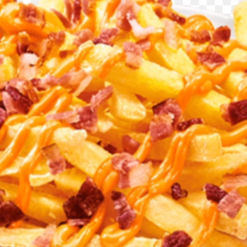 Batata Frita com Bacon e Linguiça Com Muito Queijo cheddar. Molho Especial Da Casa.