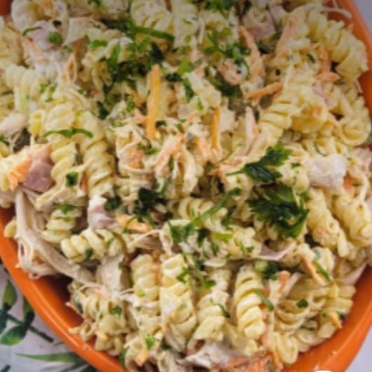 Macarrão Parafuso, Azeitona, Cenoura, Milho, Ervilha, Queijo, Presunto, Maionese 300 ml