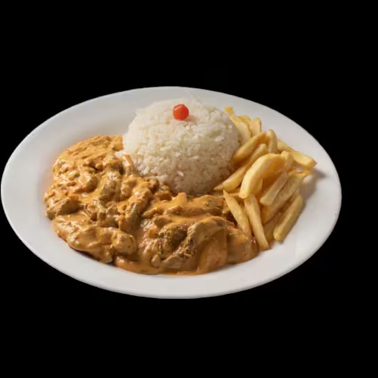 Strogonoff de frango Acompanha arroz e fritas