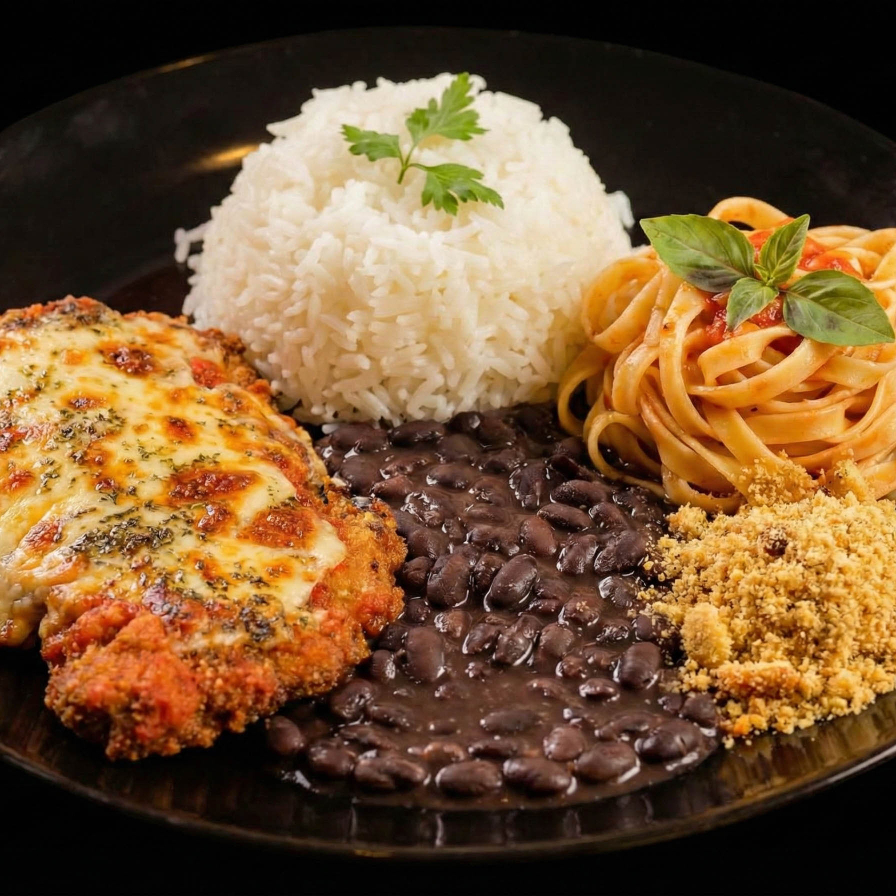 Parmegiana De Carne + Talharim + Arroz + Feijão + Farofa