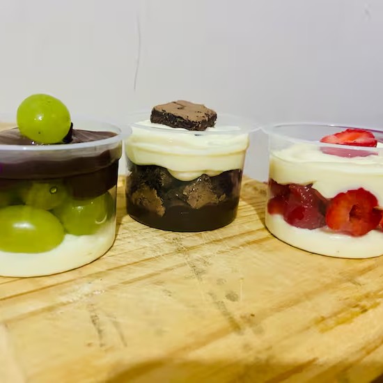 O trio perfeito pra quem ama um docinho! Vem com: Ninho com morango fresquinho Ninho com uva e cobertura de chocolate Escondidinho de brownie com muuuito Ninho e chocolate Ideal pra dividir (ou não ). Peça agora e se apaixone por cada colherada! cada potinho pesando aproximadamente 125g