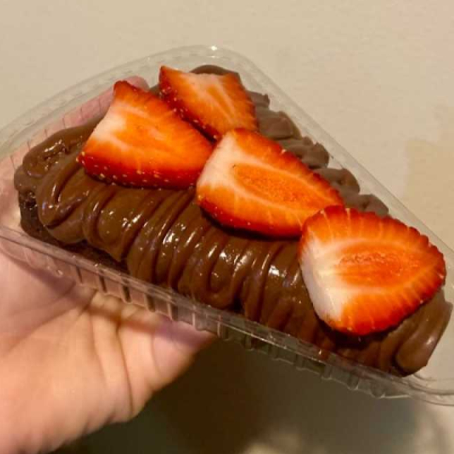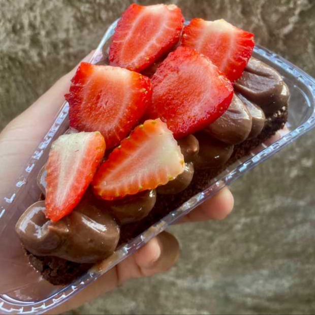 Fatia Brownie Chocolate Com Avelã E Morangos