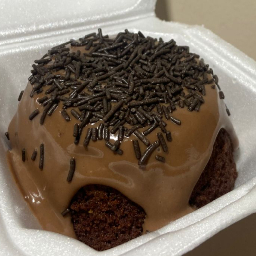 Aqui vai uma sugestão de **descrição irresistível** para o seu mini vulcão de chocolate: 🍫 **Mini Vulcão de Chocolate** Um bolinho macio e quentinho, com interior cremoso de chocolate que transborda a cada mordida. Coberto com uma generosa camada de chocolate derretido, finalizado com confetes coloridos que trazem um toque divertido e especial. Uma explosão de sabor que encanta crianças e adultos!