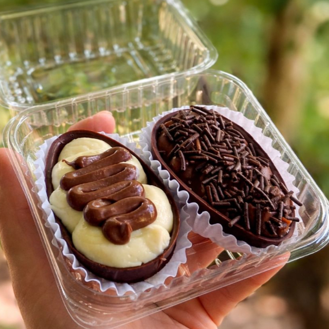 Pequenos no tamanho, gigantes no sabor! 🍫✨ O duo vem com 2 mini ovos de 50g cada, recheados e irresistíveis. E o melhor: você escolhe os sabores pra montar do seu jeito. Perfeito pra presentear ou se mimar!