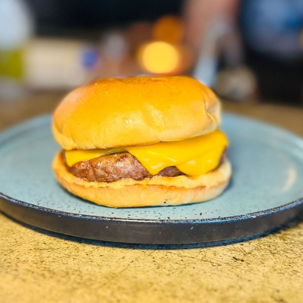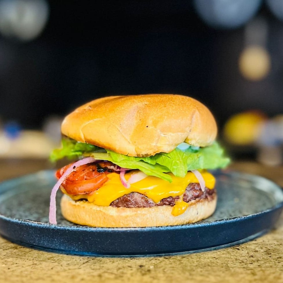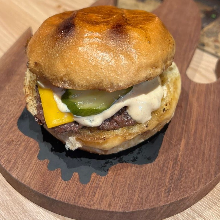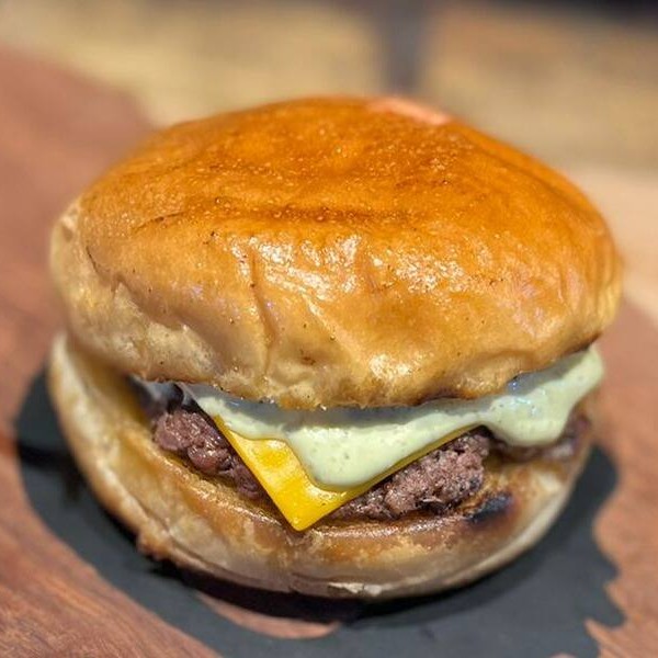 Pão de Brioche, Burguer de 120g 100% angus certificado, maionese verde, queijo cheddar fatiado.