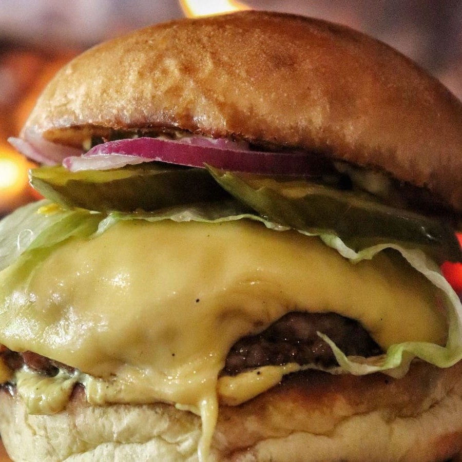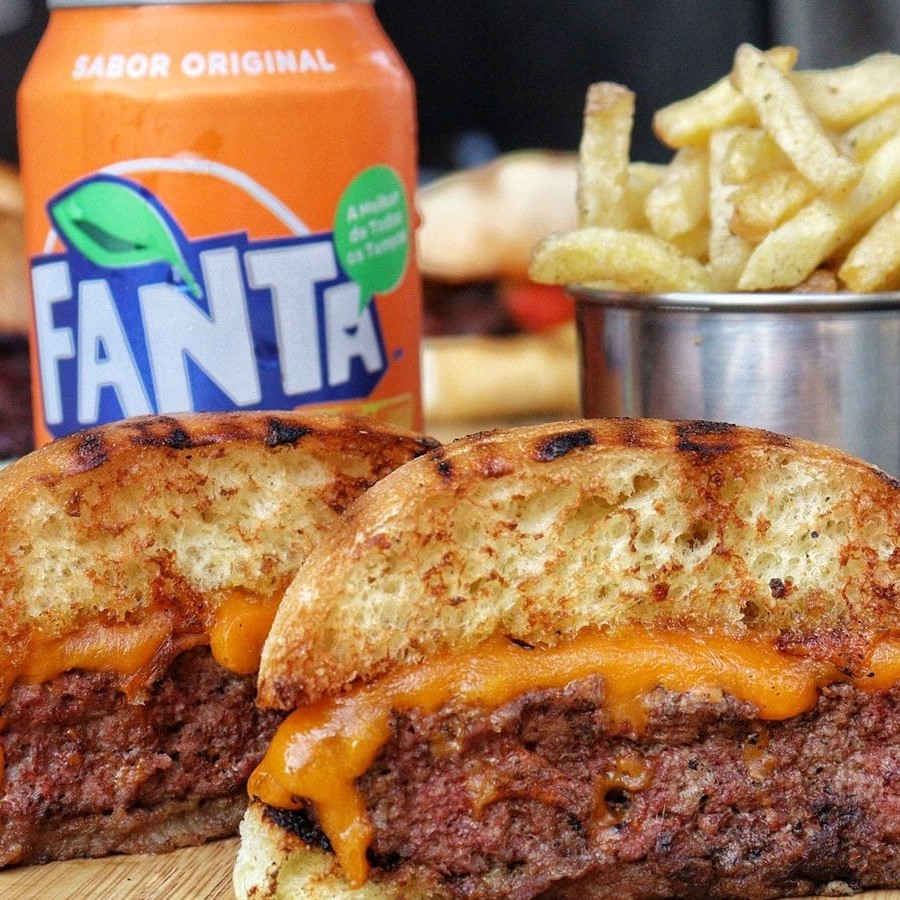 Serve 2 Pessoas: Pão brioche, carne 200gr 100% angus certificado queijo prato O simples, clássico X-Burguer. + Fritas Grande Feito na parrilla, lenha e carvão