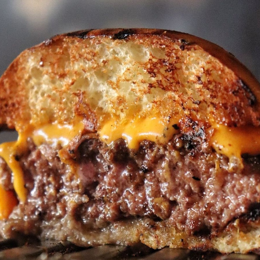 Cheddar inglês, cheddar de verdade, maturado e não processado. molho 100% caseiro, carne 200gr 100% angus certificado, pão brioche selado Feito na Parrilla