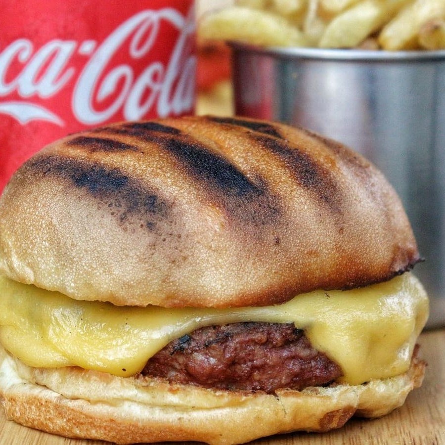 Clássico x-burger pão, carne 200gr 100% angus certificado e queijo prato + coca cola Lata Original