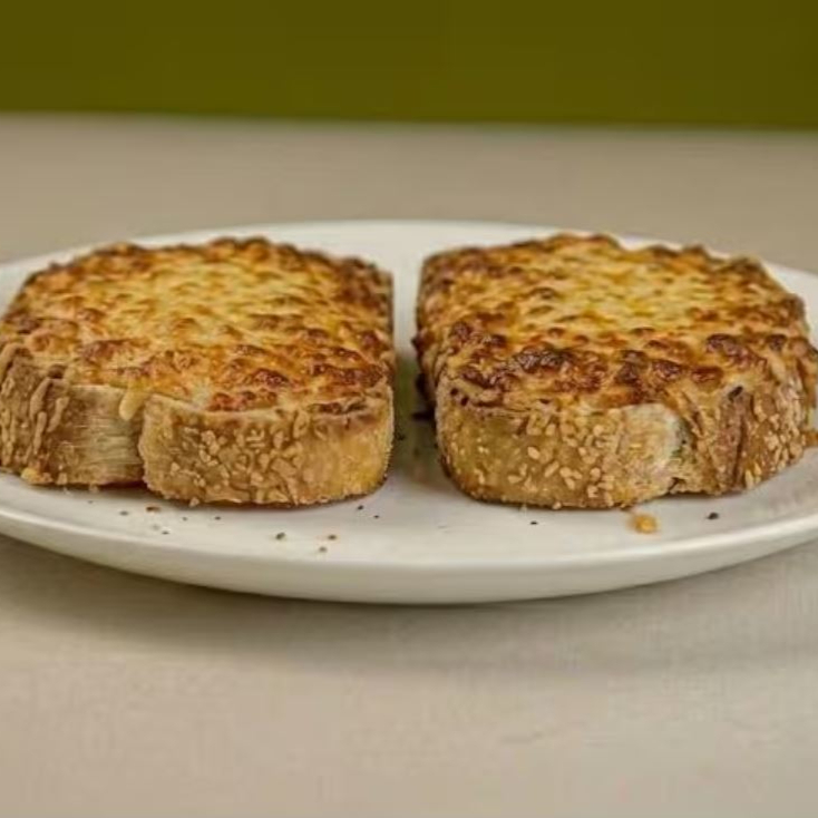 Pão de forma dourado na Manteiga e Queijo Mussarela Fatiado.