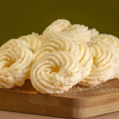 Biscoito macio e amanteigado.