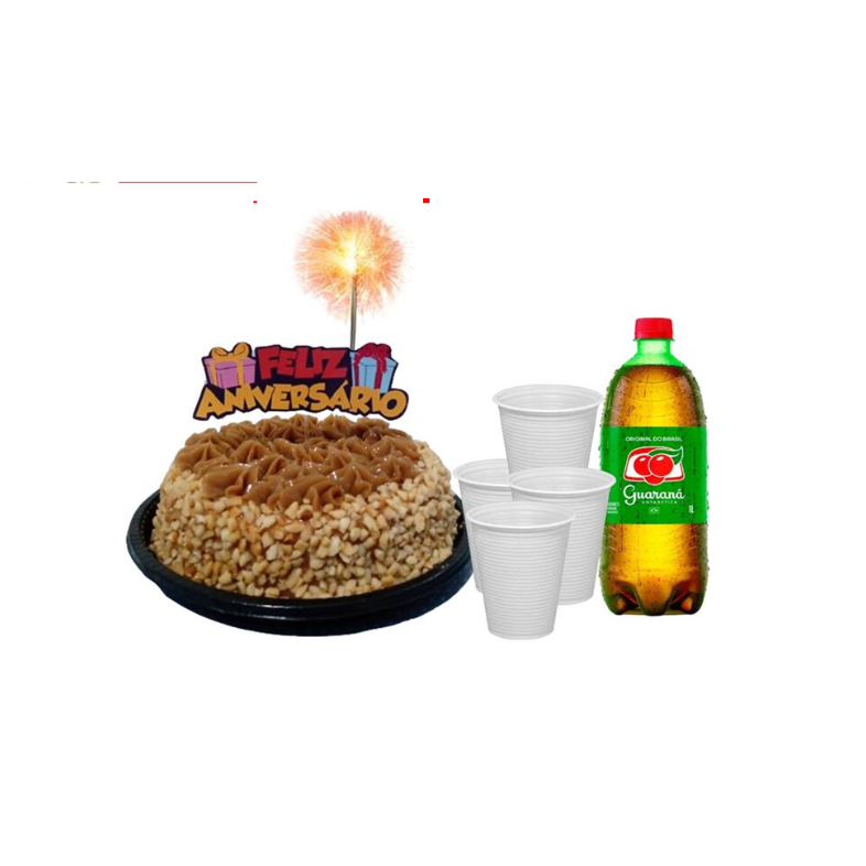 Combo 1 Bolo Bailarine Doce Leite, 1 Guaraná 1litro, 1 Vela Estrelinha,4 Copos