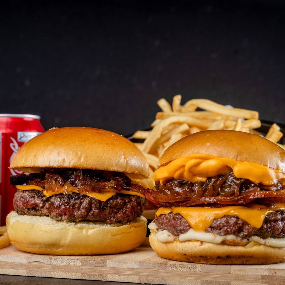 2 smash duplos da sua escolha, batata frita média crocante e 2 bebidas geladas pra acompanhar. Ideal pra dividir com aquele parceiro que não foge da responsa — muito smash, muita batata, muita moral!