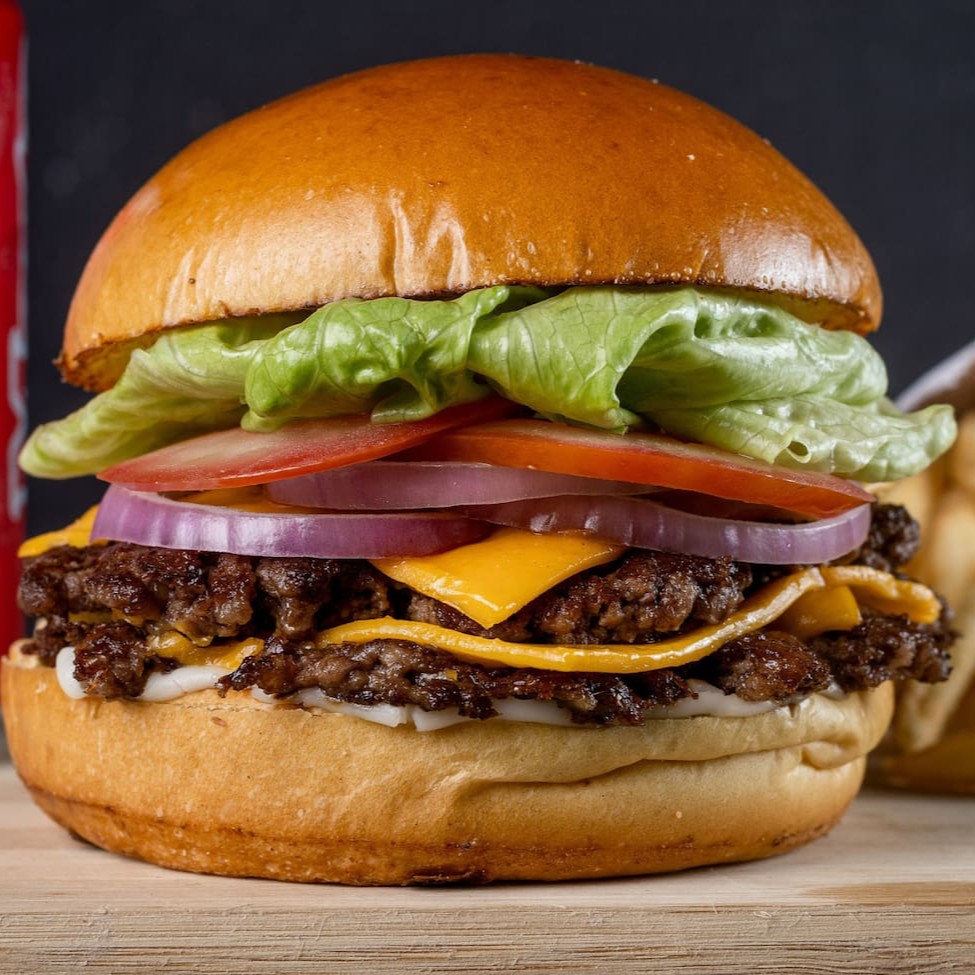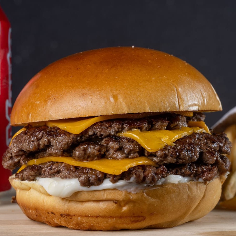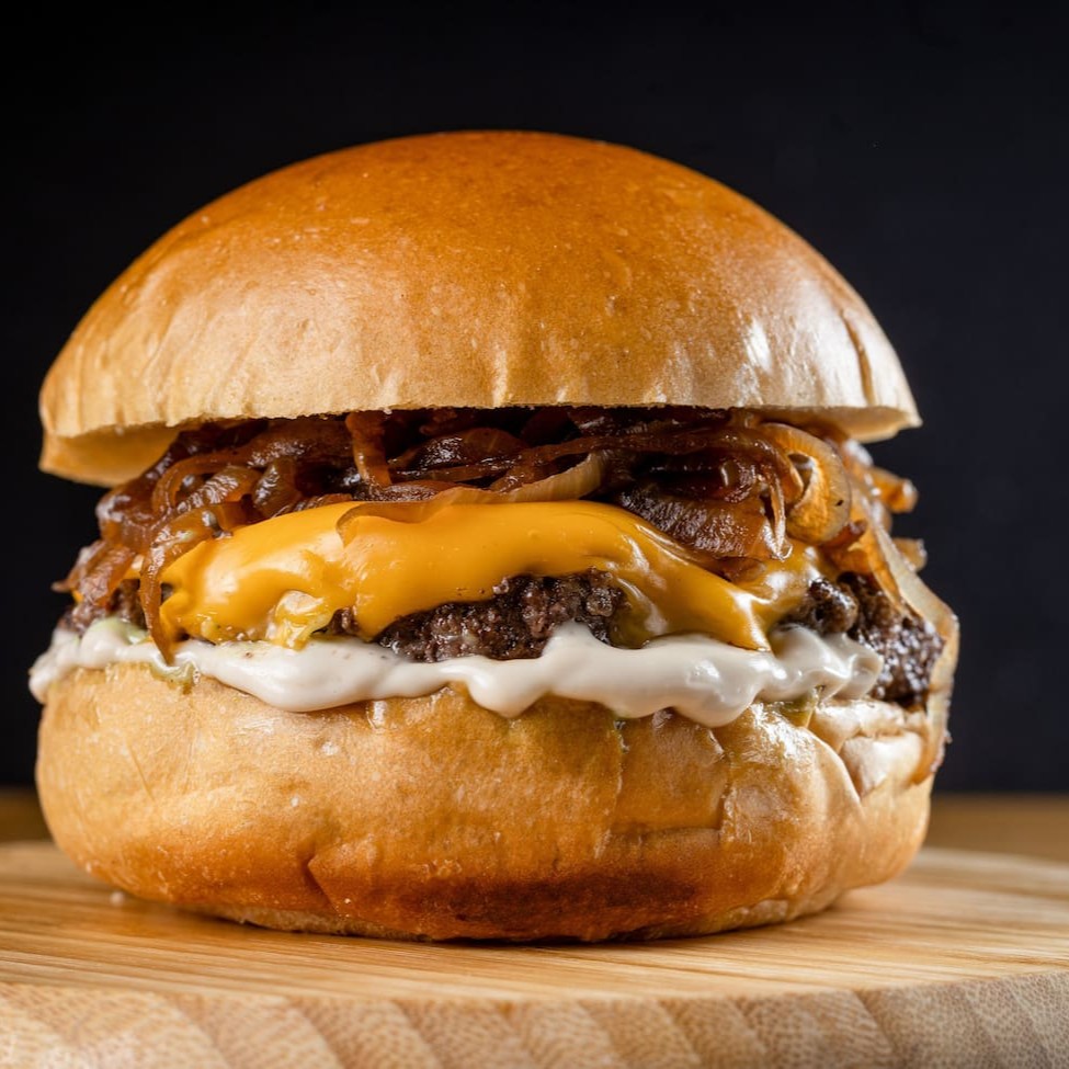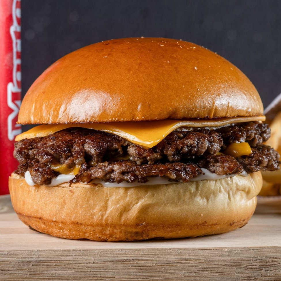 O famoso duplo smash: 2 blends de 70g de carne artesanal (140g no total), 2 fatias de cheddar derretido e molho grill no pão brioche macio. Sabor encorpado, suculência de sobra — pra comer com gosto e pedir mais um “pra contrariar a dieta”.
