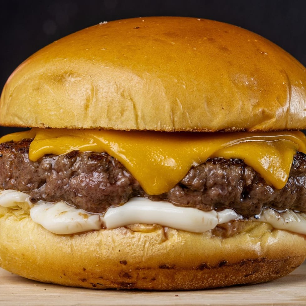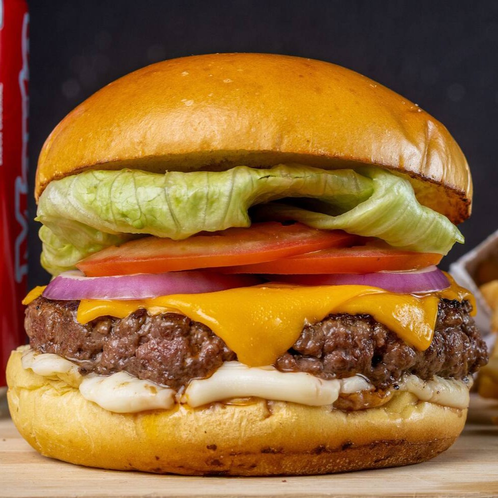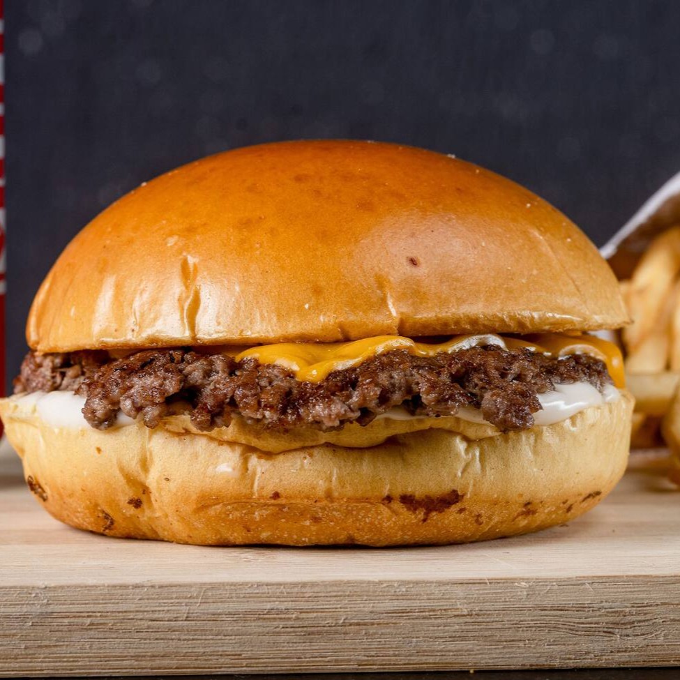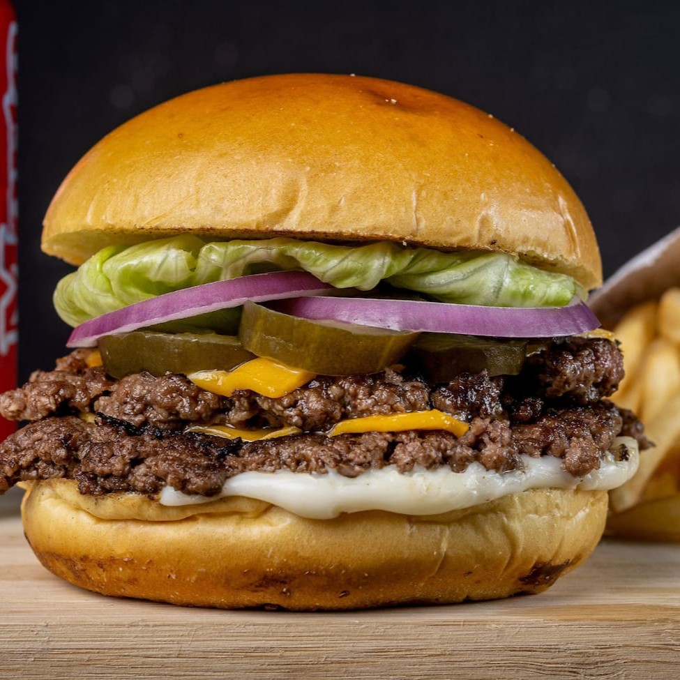 O famoso duplo smash: 2 blends de 70g de carne artesanal (140g no total), 2 fatias de cheddar derretido e molho grill no pão brioche macio. Sabor encorpado, suculência de sobra — pra comer com gosto e pedir mais um “pra contrariar a dieta”.