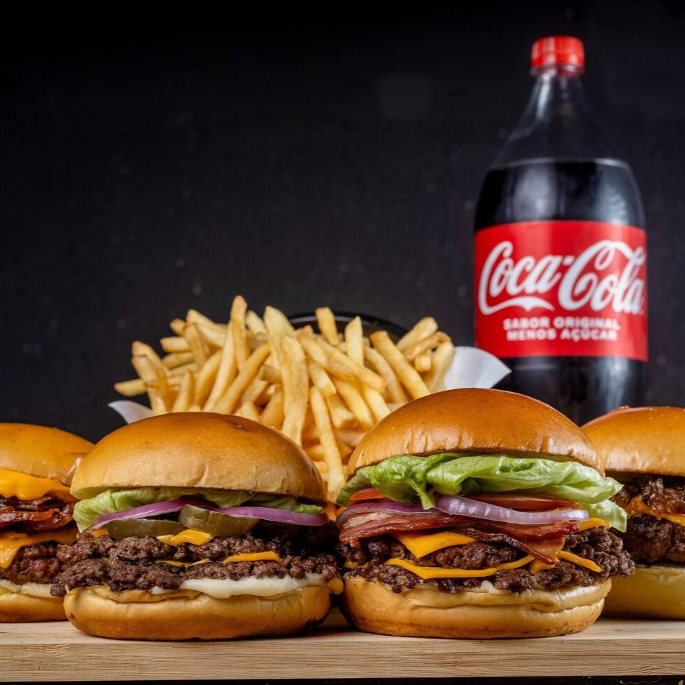 7 burgers de sua escolha, batata frita grande crocante e refrigerante 1,5l. Muita comida pra muita gente! Ideal pra compartilhar com a galera, provar vários sabores e sair satisfeito — porque aqui não falta fartura nem sabor.