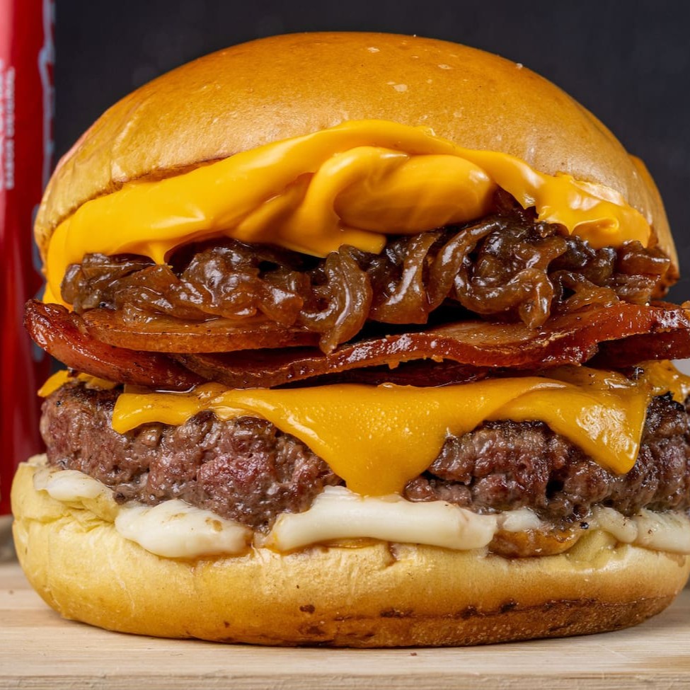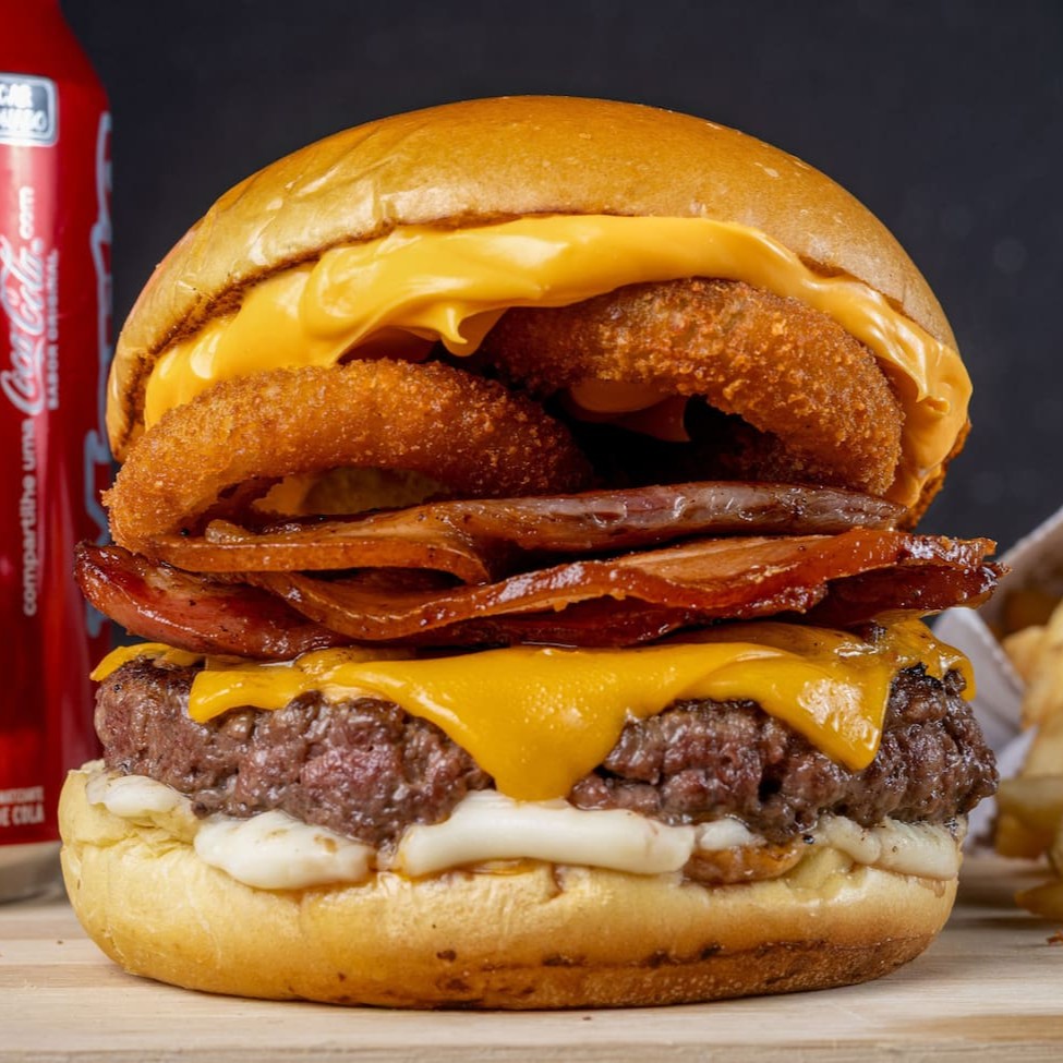 Blend de 160g de carne artesanal, 2 fatias de cheddar, cebola caramelizada, molho cheddar, bacon crocante e molho grill no pão brioche macio. Um hambúrguer intenso, cheio de camadas e personalidade — “quem disse que a boca é sua?” Aqui, o sabor manda!